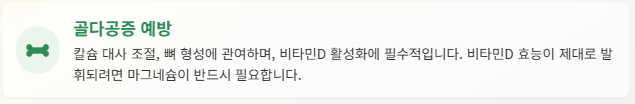 칼슘과 함께 뼈를 구성하는 주요 미네랄이며, 골밀도 유지에 중요한 역할을 합니다.