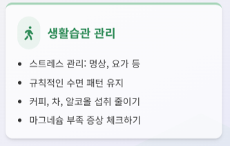 마그네슘 보충 시 컨디션 회복이 빠른 편입니다.