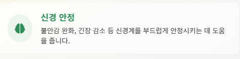 불안감 완화, 긴장 감소 등 신경계를 부드럽게 안정시키는 데 도움을 줍니다.