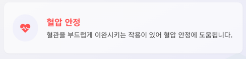 항염 작용이 있어 관절·근육 통증 감소에도 간접적 도움이 됩니다.